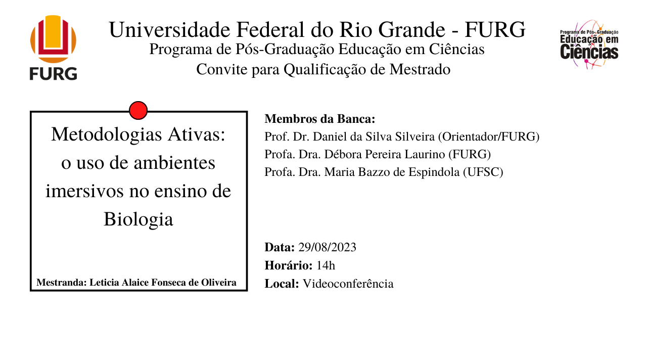 O projeto de dissertação intitula-se: Metodologias Ativas: o uso de ambientes imersivos no ensino de Biologia