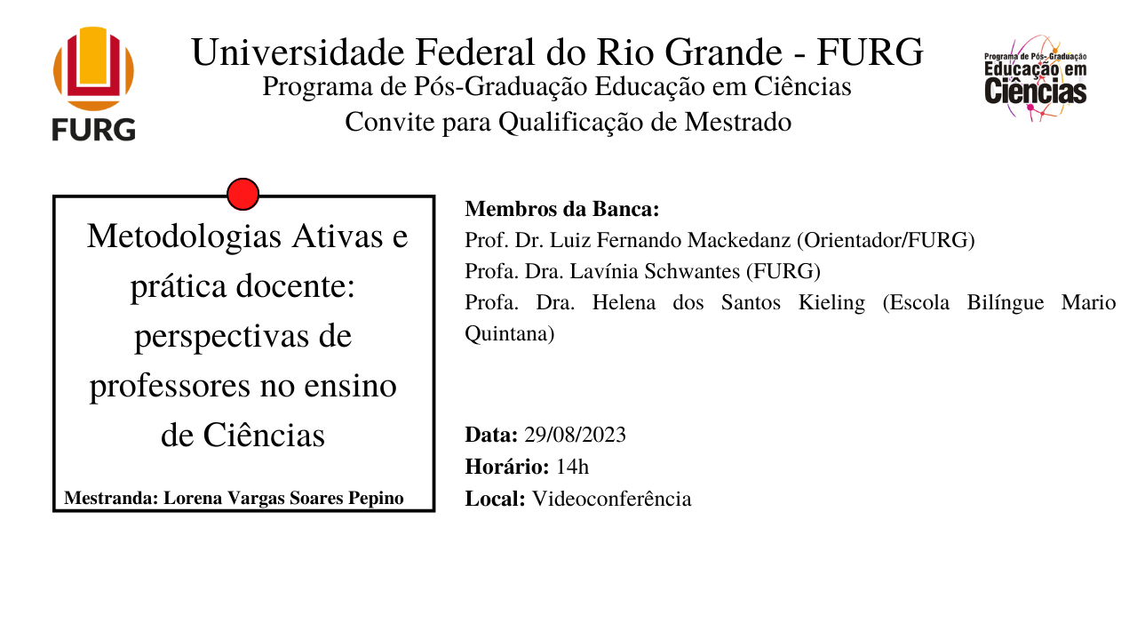O projeto de dissertação intitula-se: Metodologias Ativas e prática docente: perspectivas de professores no ensino de Ciências
